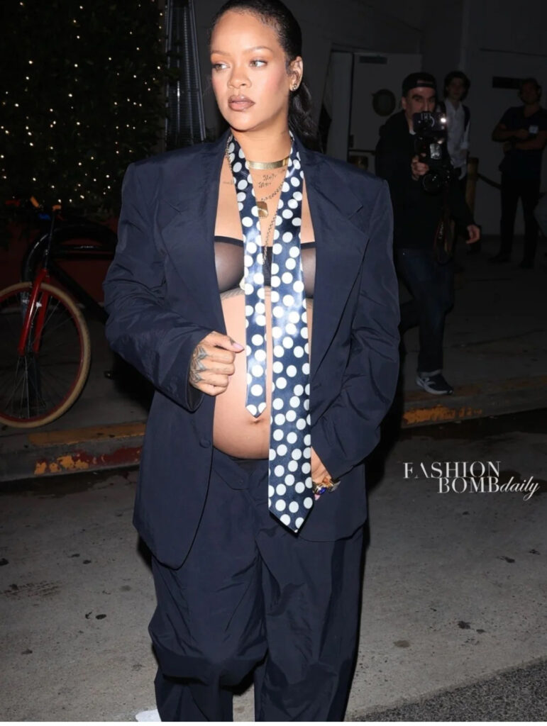 Rihanna was spotted grabbing lunch in Los Angeles, once again turning the sidewalk into her personal runway. The style icon showcased her maternity glow in a blue-and-white striped two-piece look by Miu Miu, featuring a cropped, collared button-down shirt and a voluminous matching skirt slung low to highlight her baby bump. The ensemble captured her […]